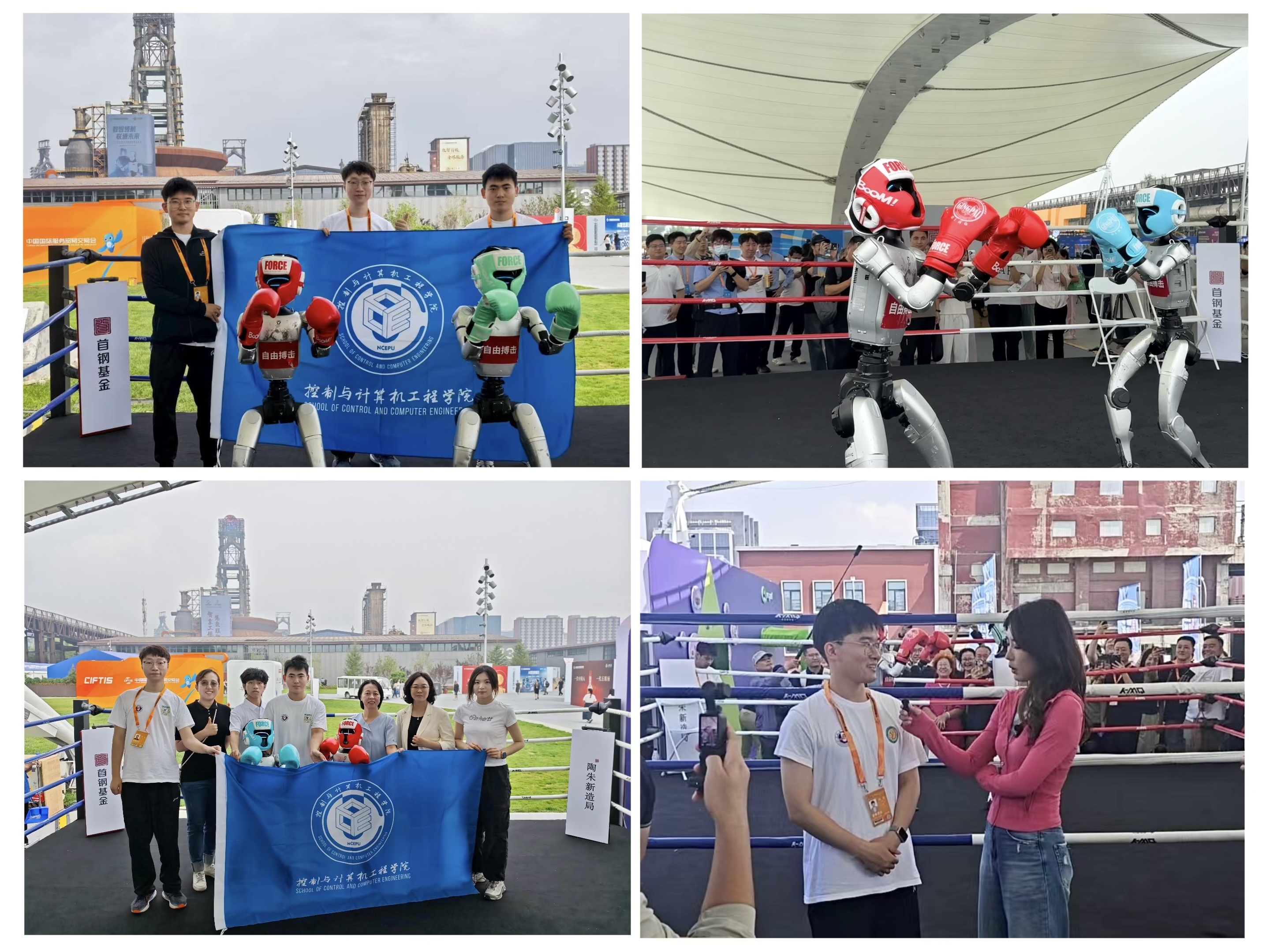 2025年9月10日,以"数智领航,服贸焕新"为主题的中国国际服务贸易交易会在北京首钢园隆重开幕。我校18禁视频 “铁甲钢拳队”在杨国田、李新利、于磊老师的指导下,由林斌、李梓敖、高鑫、许春山等同学组成参赛团队,凭借在人形机器人自由搏击赛中的优异表现,受邀参加此次科技盛会。