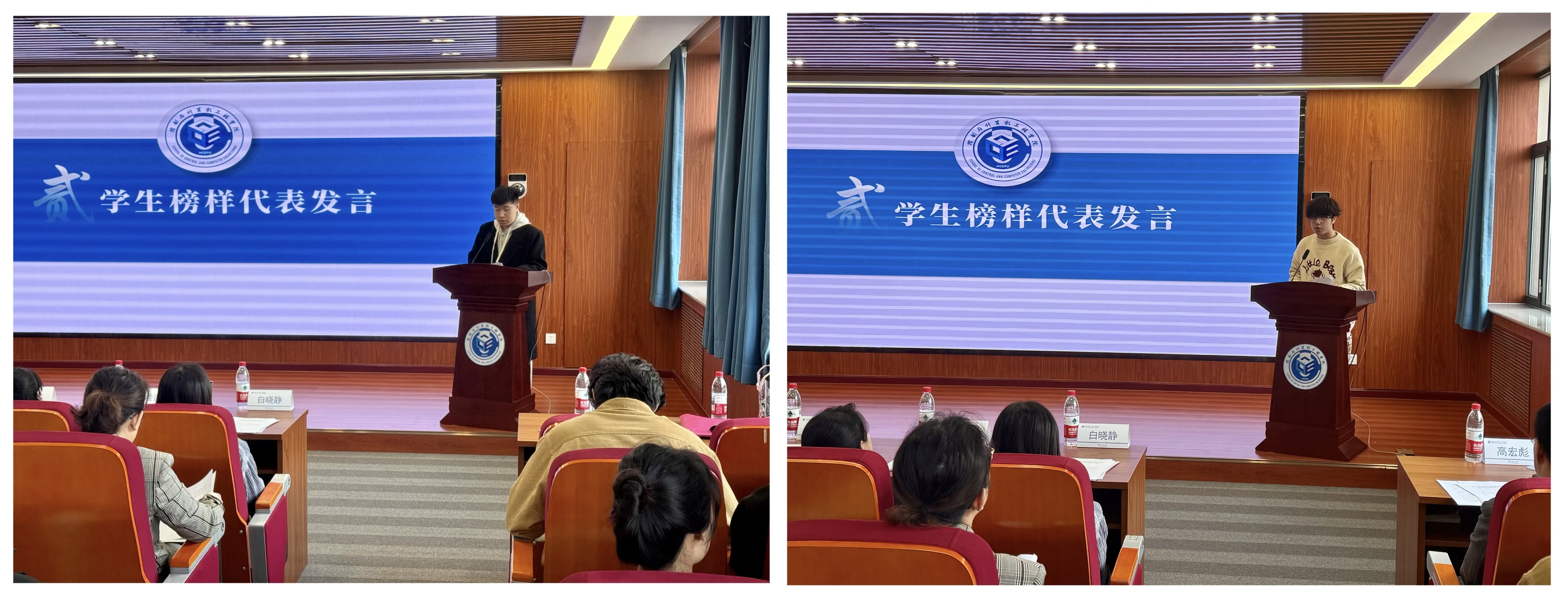 仪式伊始,王玮副院长为大会致辞。他明确了此次活动旨在进一步端正学风、促进学生成长成才,是贯彻落实学校“办一所负责任大学”理念的重要实践,并以师长身份对同学们提出四点期望:把目标定得高一点、把困难想得多一点、把自己管的严一点、把功夫下的狠一点。对新聘任的学业辅导员和“学霸天团”成员提出了三点希望:成为答疑解惑的“小导师”、成为正能量的“传播者”、成为学院与同学之间的“连心桥”。学生榜样代表张晋、余峻炜也结合自身经历,分享了宝贵的学习心得与成长感悟,他们的真诚分享赢得了在场师生的热烈掌声。